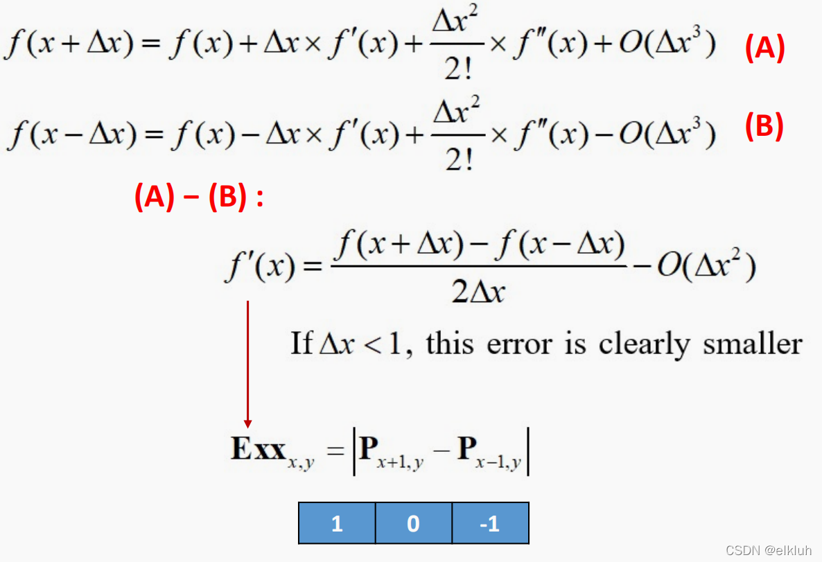For vertical formwork , First (a) The middle shaded part in the figure is the pixel value we require . It is equal to the surrounding 8 Convolute the pixel values to get , That is to say Mx Make inner product with these nine pixel values , Pixels P_00 * 1 + P_01 * 0 + P_02 * (-1) + P_10 * 1 + P_11 * 0 + P_12 * (-1) + P_20 * 1 + P_21 * 0 + P_22 * (-1). obtain Mx(x,y).( I don't understand what this symbol stands for )