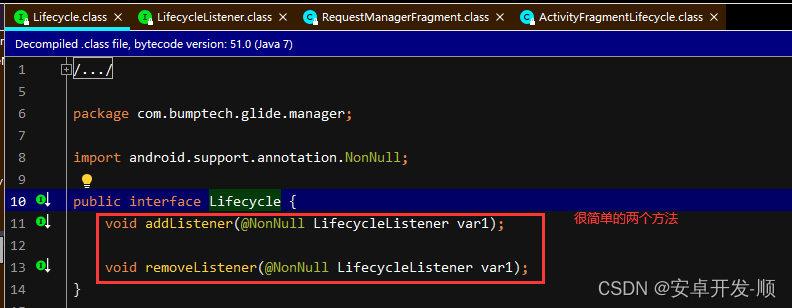 由于Glide框架的源码非常庞大,我们不会把所有细节分析一遍,本文只分析其核心源码,重点分析其对生命周期的监听和缓存的处理。