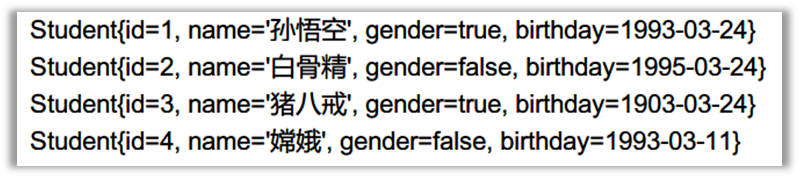案例:使用PreparedStatement查询id为1的一条学生数据,封装成一个学生Student对象