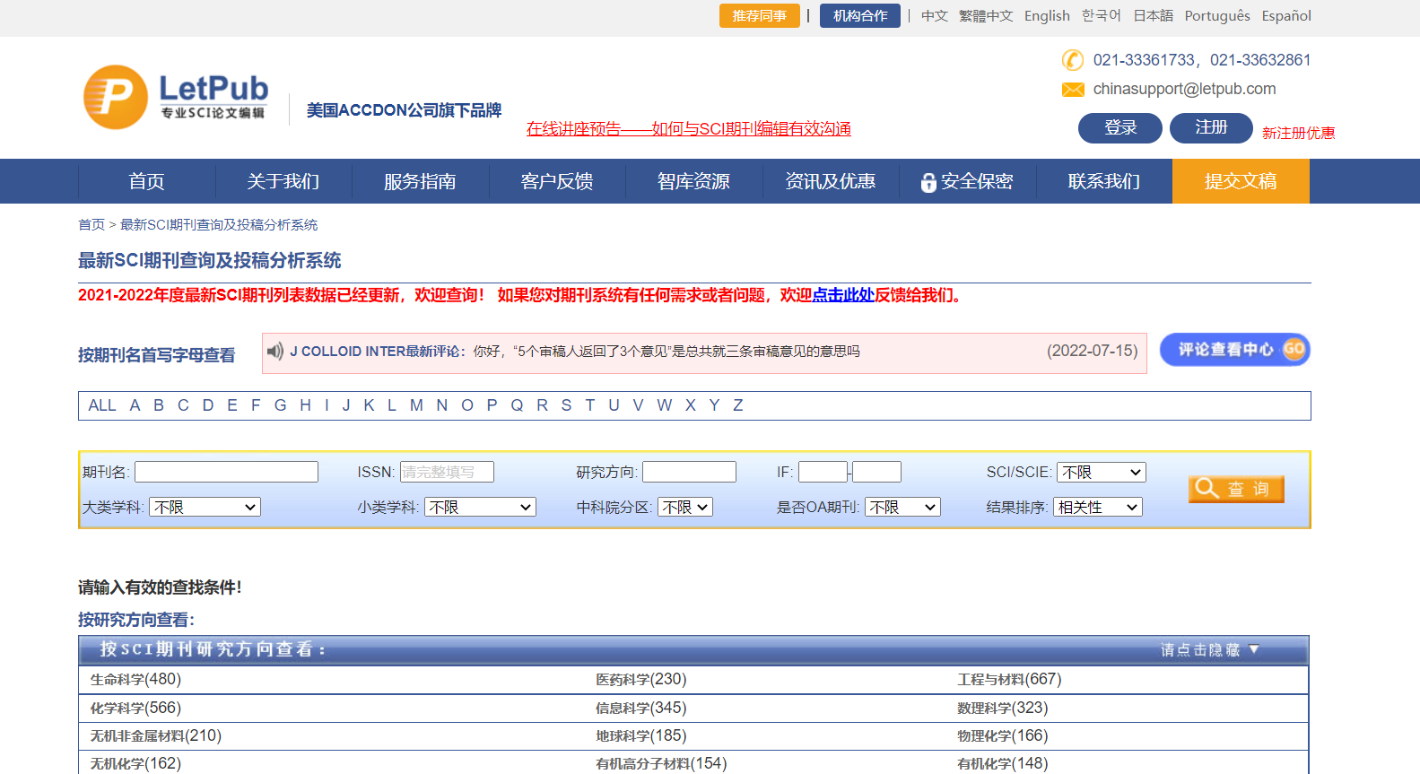 找合适的期刊怎么能少得了LetPut呢,它可以按学科和分区以及是否 OA 来选择期刊,非常好用的期刊选择网站,我主要通过上面的网站来查询期刊,下面的网站来查询分区和作者评论,综合考虑选择哪个期刊。