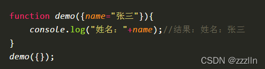 The above code shows us how to set the default value of function parameters by deconstruction assignment , Simple code can be achieved . When calling a function, no corresponding name Parameters , here name The default value will be used :“ Zhang San ”, Is it very simple and convenient .