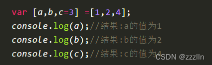 Set the element value of the array 1,2,3 Assign values to variables a,b,c, The result is as we wish , Assignment successful , This is a traditional way of assignment .