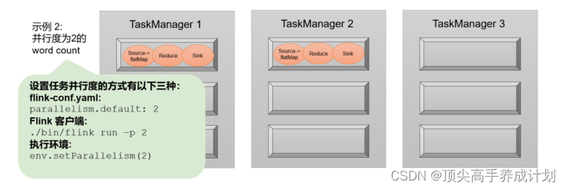 - It can be seen that Flink Parallelism and Spark The concept of repartition is very similar to