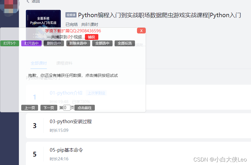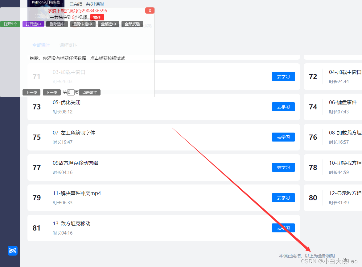 13.点击下载扩展里面的捕获,确实捕获到了全部课时