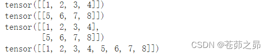 print(m.t()) # Transposition , from 2x4 Turn into 4x2
