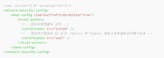 It has been verified in Android 7.0 Or more systems have enabled restrictions on third-party certificates . But in Android 7.0 The following can still be Fiddler/Charles The certificate is installed on the user's CA Focus on grabbing https request .