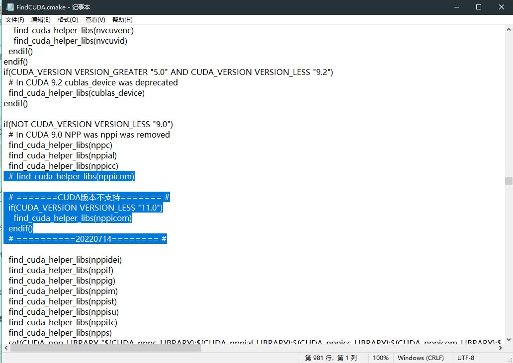 File path :/cmake-3.14/Modules/FindCUDA.cmake, The screenshot of the changed file content is as follows :