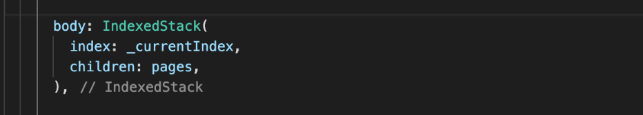 从上面IndexedStack的构造函数中,我们知道IndexedStack需要传入一个index属性和对应的children。