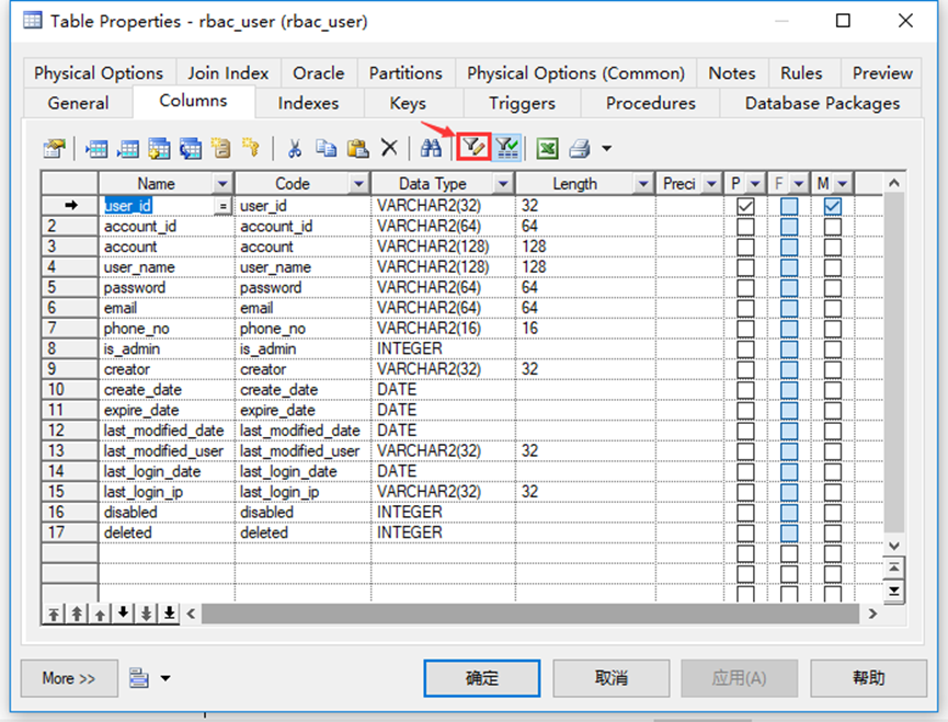 PowerDesigner The default displayed column is Name And type , As shown in the figure below :