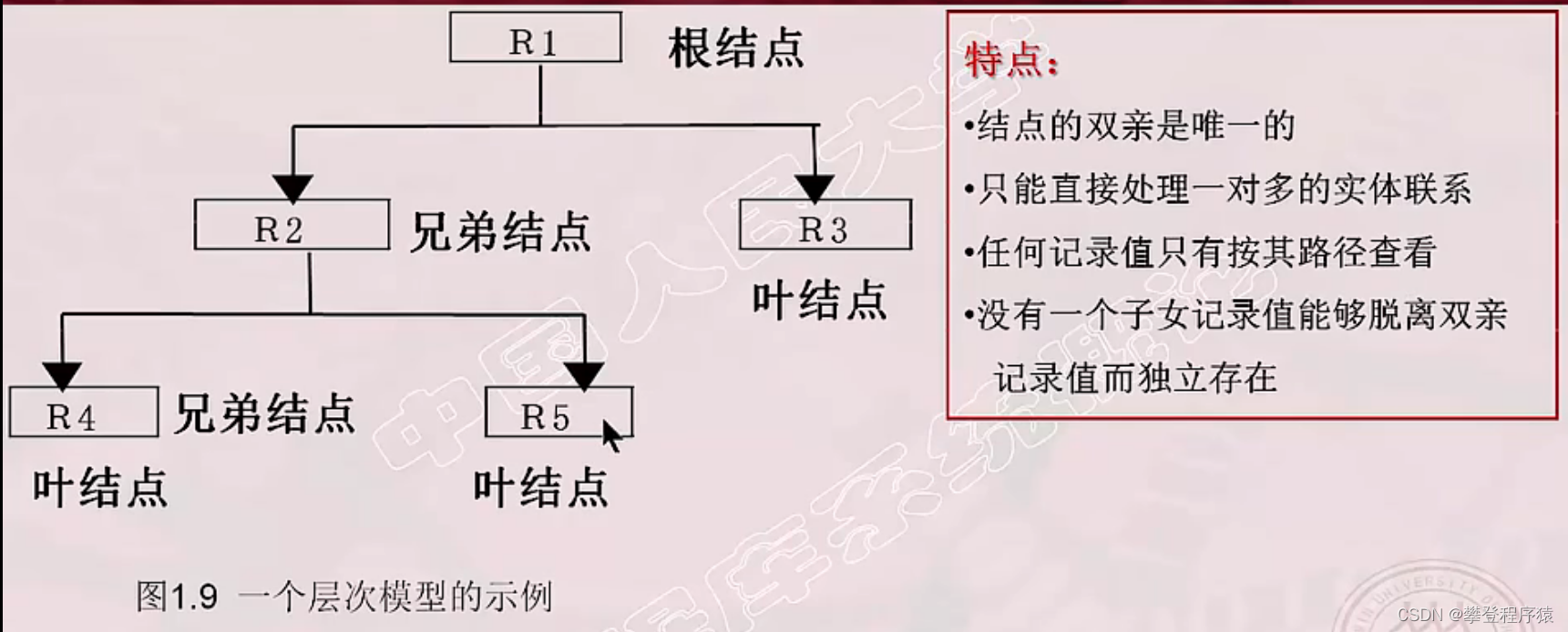 The hierarchical model uses A tree structure To represent all kinds of entities and the relationships between them ,XML Language , The set of basic hierarchical relations satisfying the following two conditions is a hierarchical model