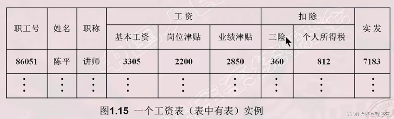 (1) Each component of a relationship must be an indivisible data item , It is not allowed to have tables in the table