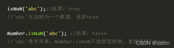 Number Below isNaN Are too lazy to give strings ’abc’ Do type conversion , Go straight back to false. and ES5 Medium isNaN The function returns the string ’abc’ After type conversion , Find out it's a NaN( Non numerical ), To return to true.