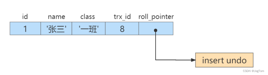 每次对记录进行改动,都会记录一条undo日志,每条undo日志也都有一个 roll_pointer 属性 ( INSERT 操作对应的undo日志没有该属性,因为该记录并没有更早的版本),可以将这些 undo日志 都连起来,串成一个链表:
