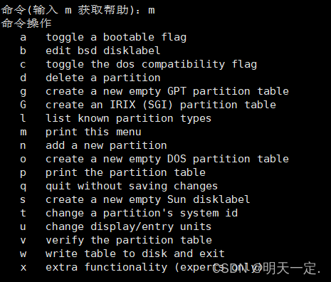 We use fdisk /dev/sda Partition the newly added disk , You can enter m See how to use