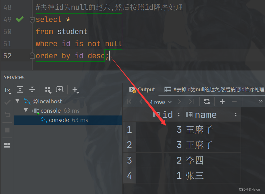 Use idea It can be changed at any time sql command , It's easy to use . Using shortcut keys ctrl+ Enter to execute sql command .