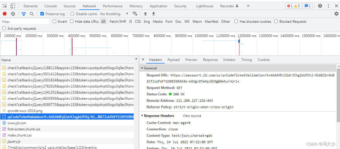 open JD Login screen , so QR_Code with 2 individual Cookies, And the Lord API Interface . Which is displayed at the end of the interface t=1657781923616 Indicates the corresponding Unix Time stamp ( Granwich seconds ).