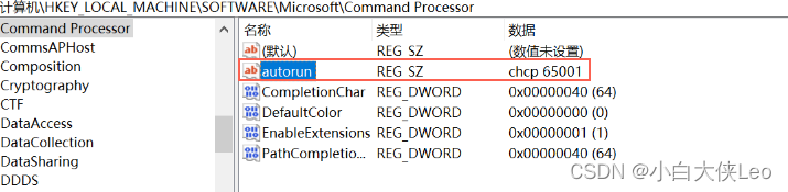 win+r运行,输入"regedit",找到HKEY_LOCAL_MACHINE\SOFTWARE\Microsoft\Command Processor