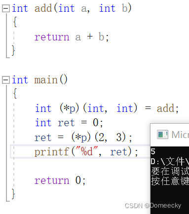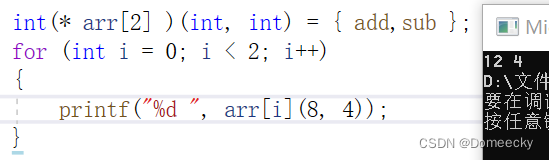 int(*arr[3])(int, int) = { 0, add,sub };//将函数放入数组,0起到一个填补作用,否则下标和选项对不上