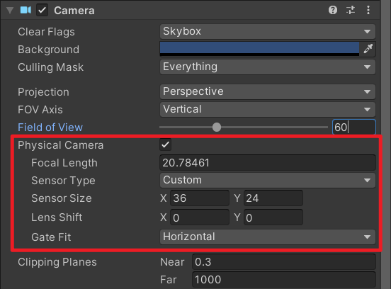 2019 The new version features , When checked, simulate the focal length of the camera in the real world 、 Sensor size 、 Lens displacement, etc , Generally not used