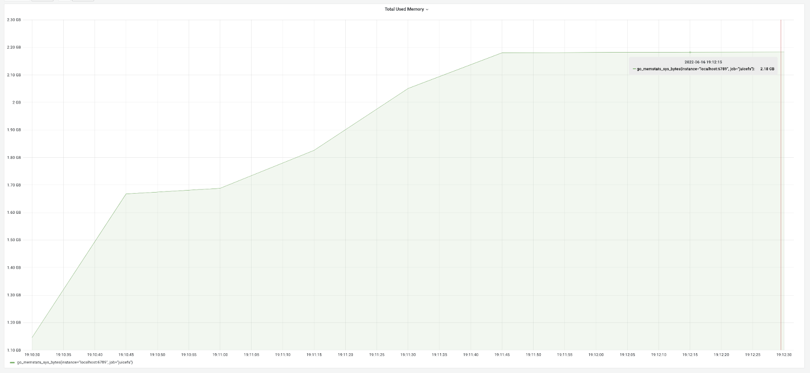 我们以包含110 万文件元数据的 redis 为例进行测试,测试结果为 dump 过程耗时 7 分 47 秒,内存占用为 3.18G。(为了保证测试结果的可比性,本文的所有测试都是使用同一份元数据)