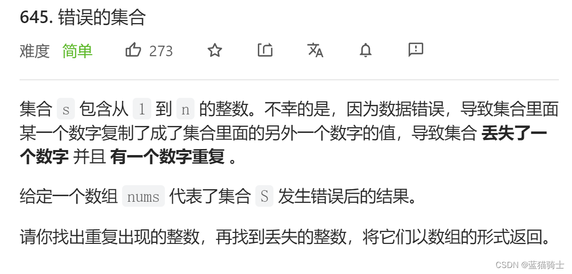 当前位置:网站首页>645. 错误的集合