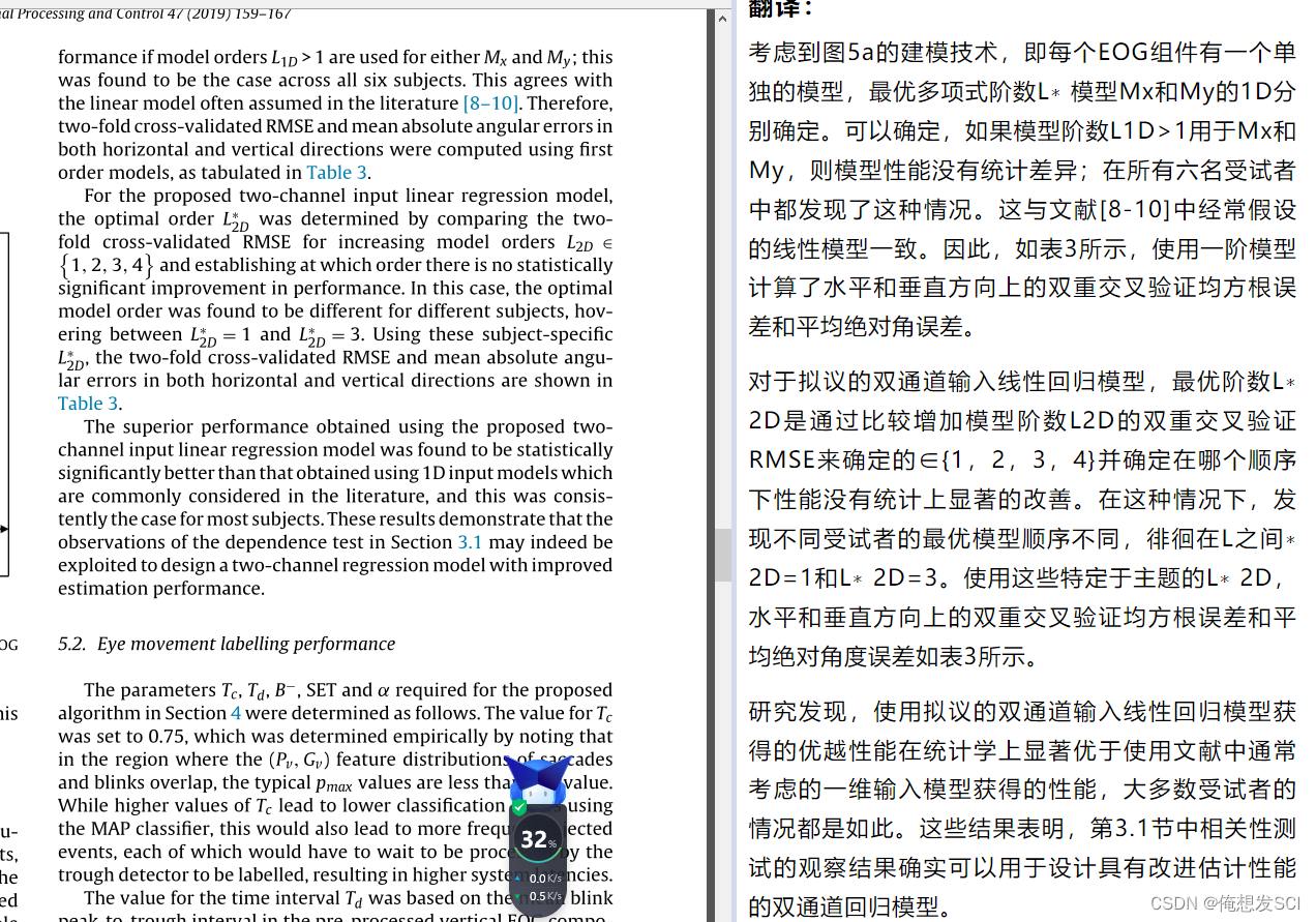 本文的其余部分分为以下几部分:;第2节重点介绍EOG信号的采集和处理,第3节介绍了相关性测试以及拟议的双通道输入回归模型。第4节介绍了拟议的实时眼动检测和标记技术,第5节介绍了使用拟议技术获得的眼位姿估计和眼动标记性能。最后,第6节介绍了一种基于EOG的异步虚拟键盘,并对其性能进行了测试。第7节总结了本文。