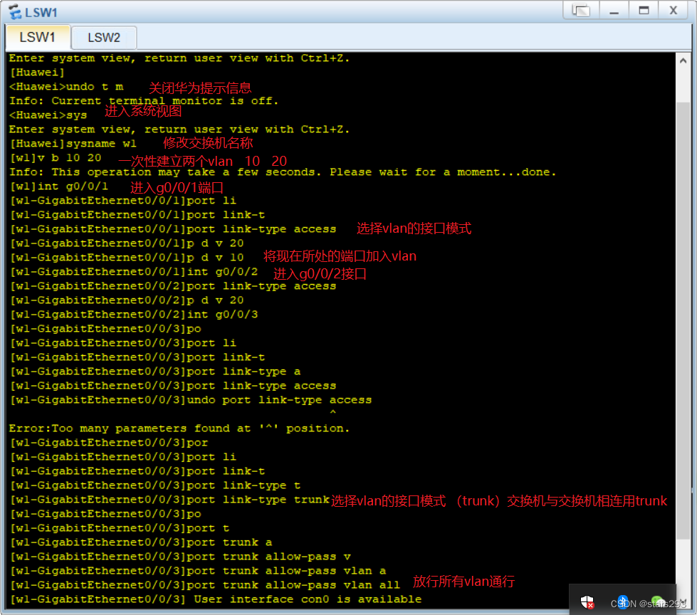 【系统视图】vlan batch 10 30 40 //一次性建立多个vlan(连续的vlan可以 to)