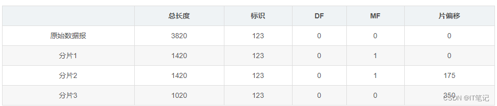 Slice offset (offsetfrag): Occupy 13 position . Film offset indicates : Longer IP Message after fragmentation , The relative position of a piece in the original group . in other words , Relative to the starting point of the user data field , Where does the film start . Film offset with 8 Bytes are offset units . The length of each piece must be 8 Integer multiples of bytes .