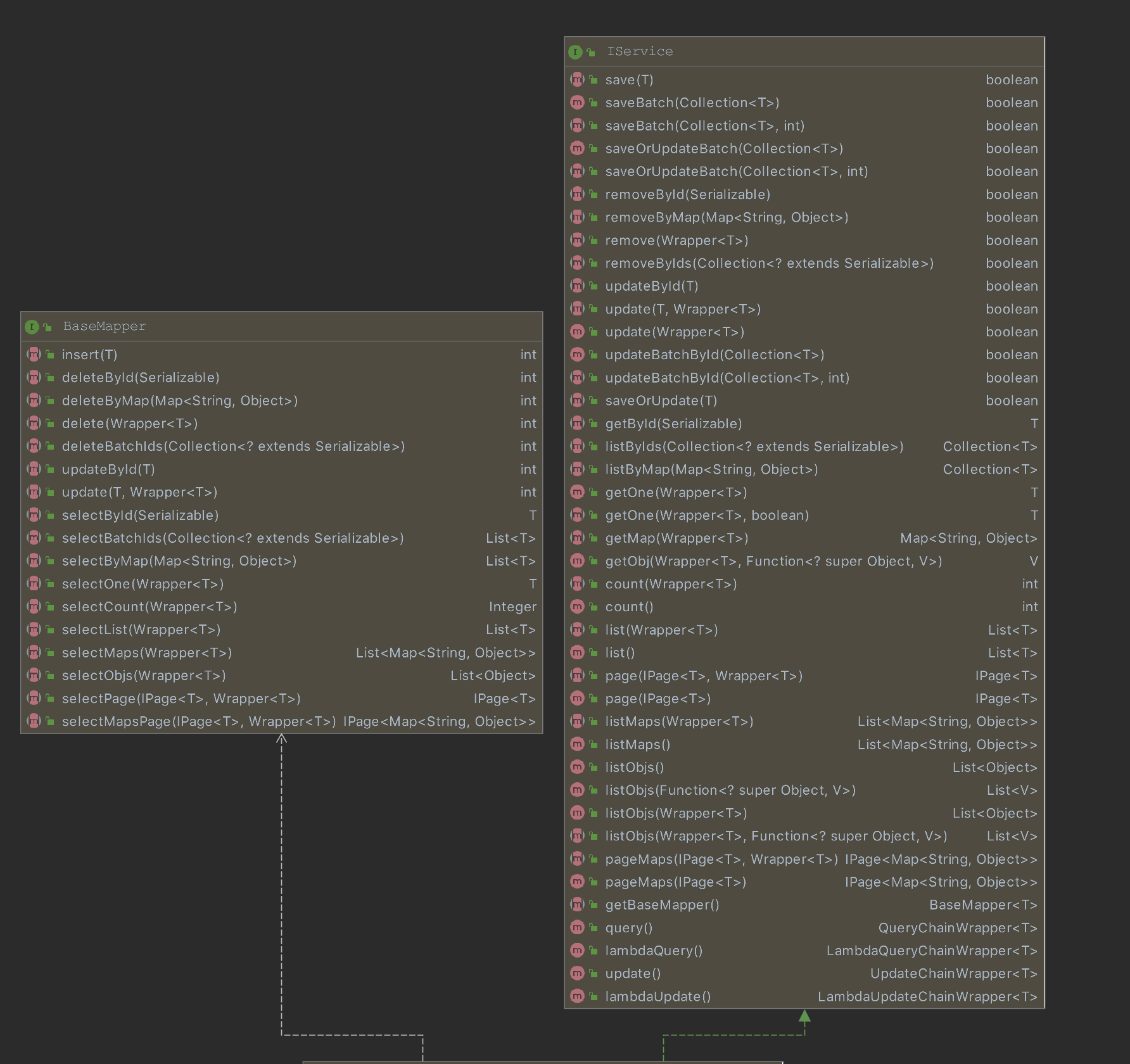 - IService It's right BaseMapper An extension of , from BaseMapper、IService、ServiceImpl The class relationship and source code of the three can be seen ;