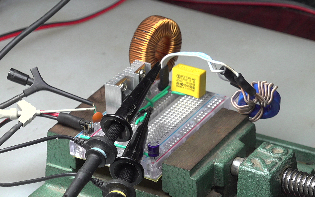 在这里初步搭建了ZVS测量电路, 电路原理图以及参数在这里给出了。 观察了电路中MOS管漏极与栅极电压信号, 验证了电路工作频率与电路器件之间的关系。