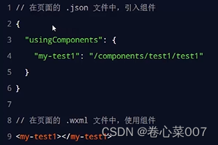 在页面的.json文件中,以键值对的形式引入,键是组件引用后的名字,值是组件的存放路径