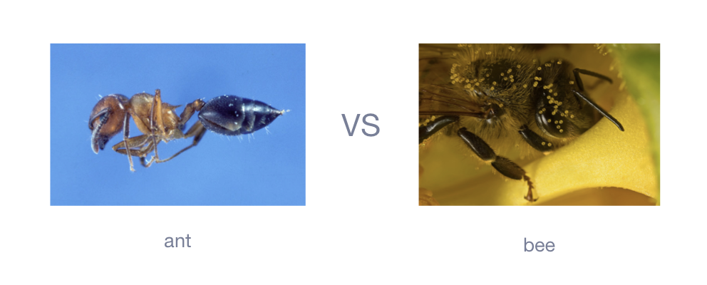 To illustrate, Let's say we wanted to develop a model that could classify between ants and bees.